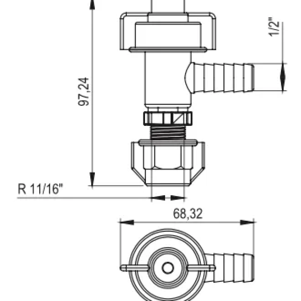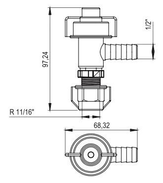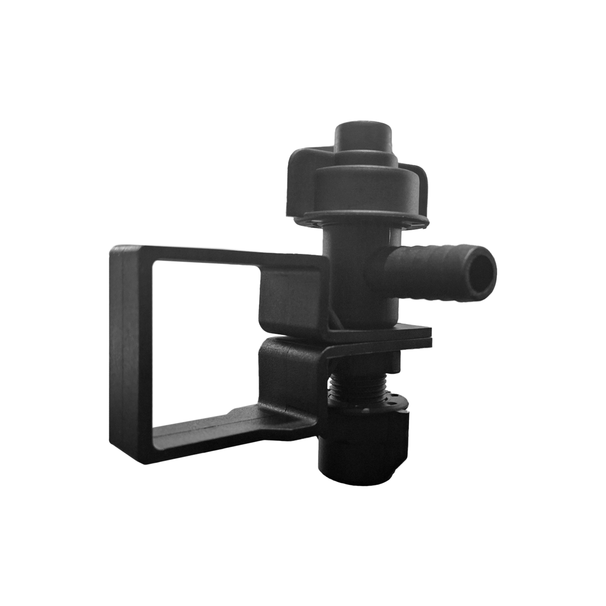 Porta Bico Simples L Intermediário Monojet Com Válvula Anti-gotejo Para Pulverizador Agrícola - Código 482182-Rosca 11/16 x mangueira 1/2-Corpo em polipropileno-Porcas e contra porcas em Nylon com fibra-Vedação em tpu
